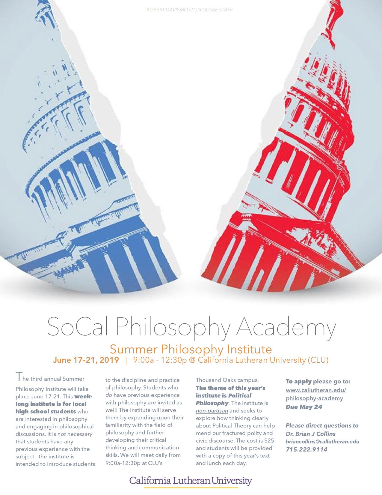 The SoCal Philosophy Academy’s annual Summer Philosophy Institute is a week-long program for local high school students who are interested in discovering philosophy and engaging in philosophical discussions.