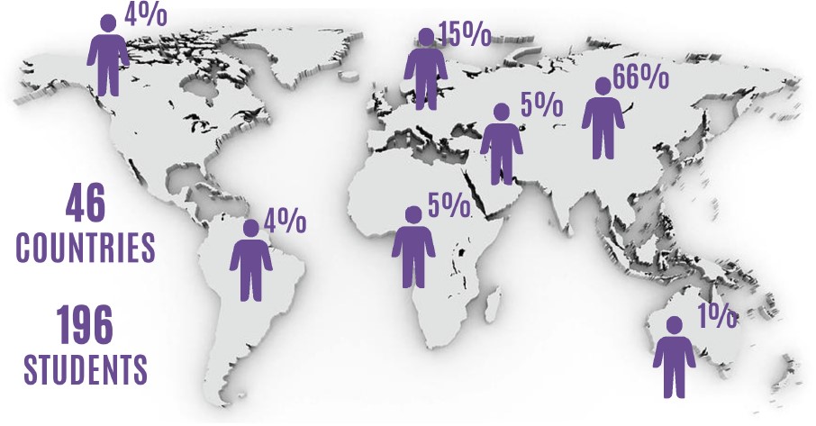 - We have international students from 45 countries and 7 continents.